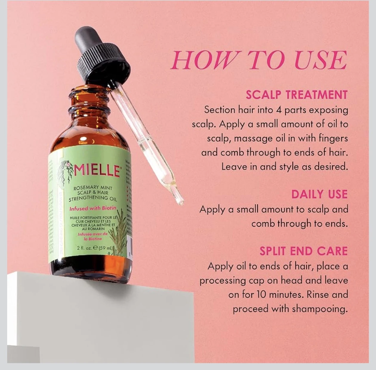 Mielle Rosemary & Mint Hair Oil with Biotin, Strengthens, Moisturises & Promotes Hair Growth , Dry Scalp & Split Ends Treatment, 59ml (Pack of 1)