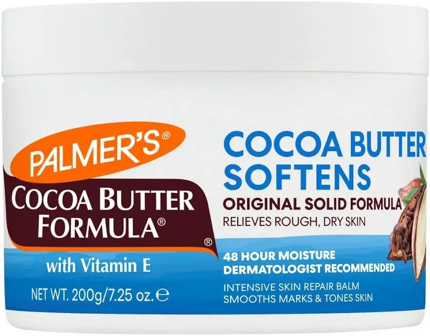 Palmers Cocoa Butter Formula Soothes Marks to help reduce the appearance of scars and marks. Rich in vitamin E to help lighten marks, it also has healing properties and tones skin while providing deep moisturization. Cocoa Butter is a healthy core substance inside the cocoa seed. One of the main benefits of Cocoa Butter is that it helps retain the moisture between skin layers preventing skin dehydration. Our Cocoa Butter also contains Vitamin E with its fantastic anti-oxidant elements that can help the anti-aging process. Cocoa Butter has an efficient way of softening the skin and removing skin marks with regular usage, leaving the skin looking healthy and radiant.